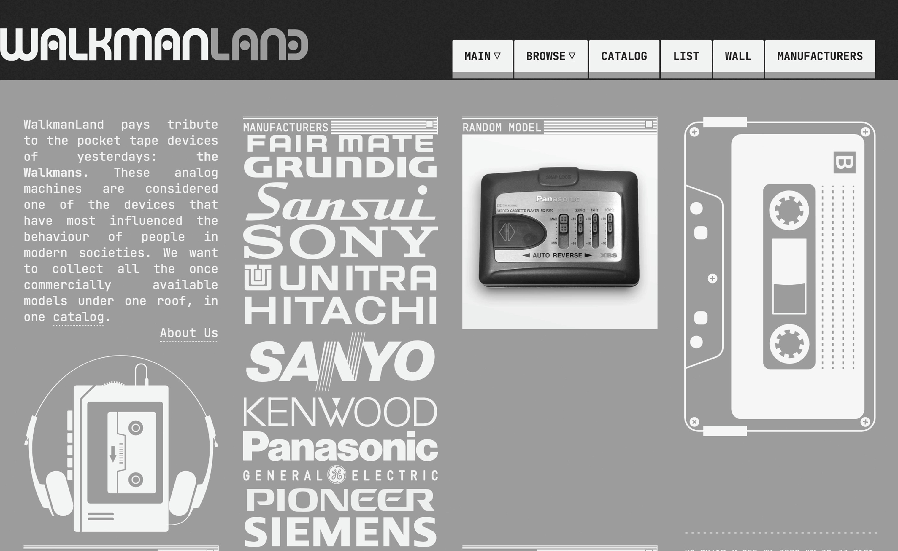 WalkmanLand pays tribute to the pocket tape devices of yesterdays: the Walkmans. These analog machines are considered one of the devices that have most influenced the behaviour of people in modern societies. We want to collect all the once commercially available models under one roof, in one catalog.